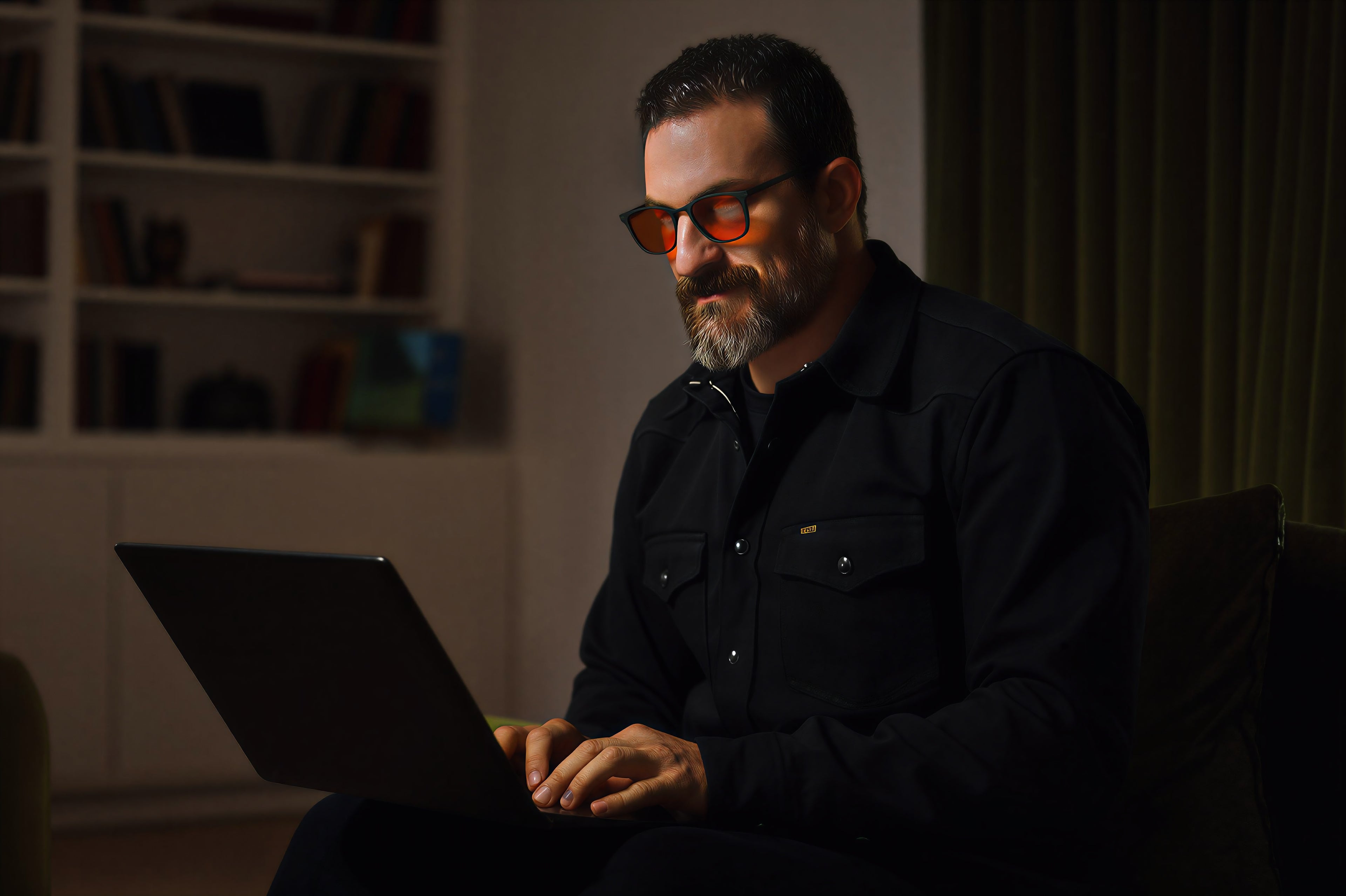 - Yellow glasses: Through the day at screen time, when there is still light. Also better for driving at night. They enhance night vision.