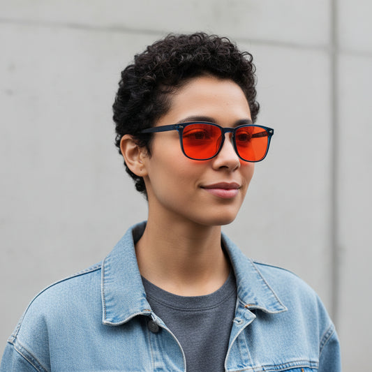 - Yellow glasses: Through the day at screen time, when there is still light. Also better for driving at night. They enhance night vision.